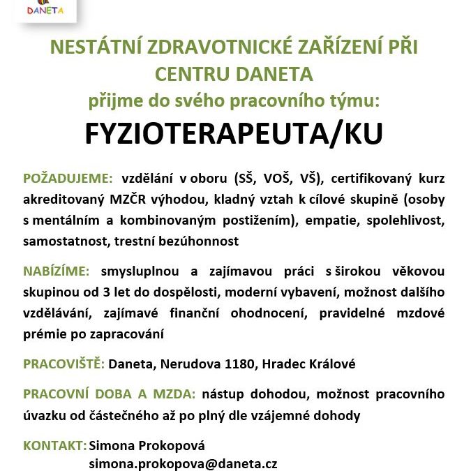 Přijmeme FYZIOTERAPEUTA / FYZIOTERAPEUTKU. Nástup možný ihned, příp. dle dohody.